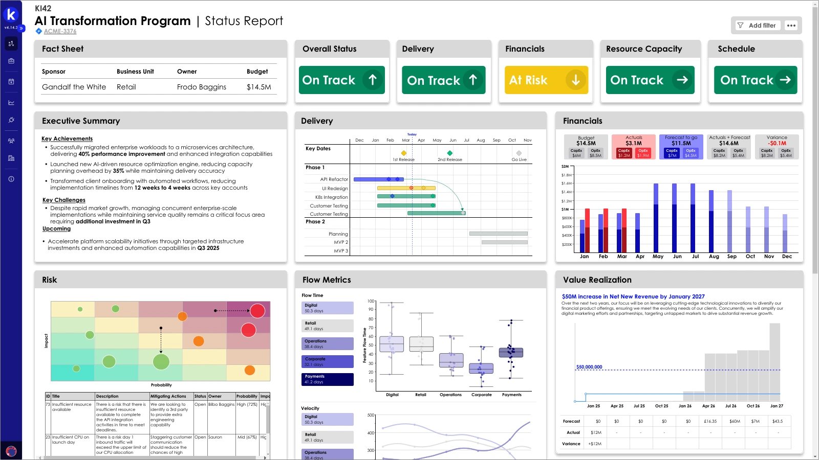• Governance at scale: The ability to monitor investments, risks, and dependencies across hundreds of initiatives